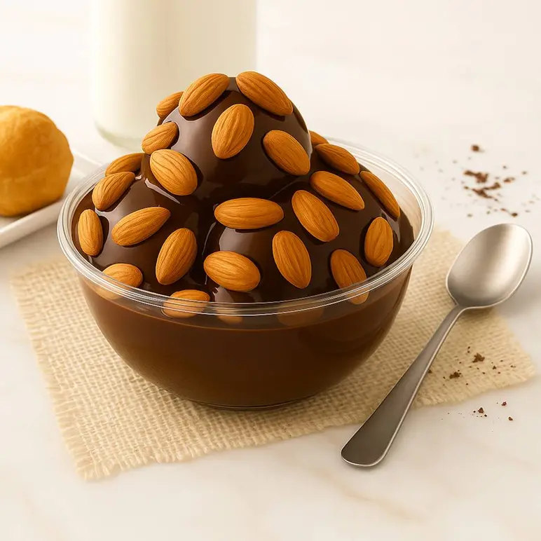 Üzerine Kavrulmuş Badem Taneleri Ve Özel Çikolata Sos İlavesi (Katkı Maddesi İçermez.)