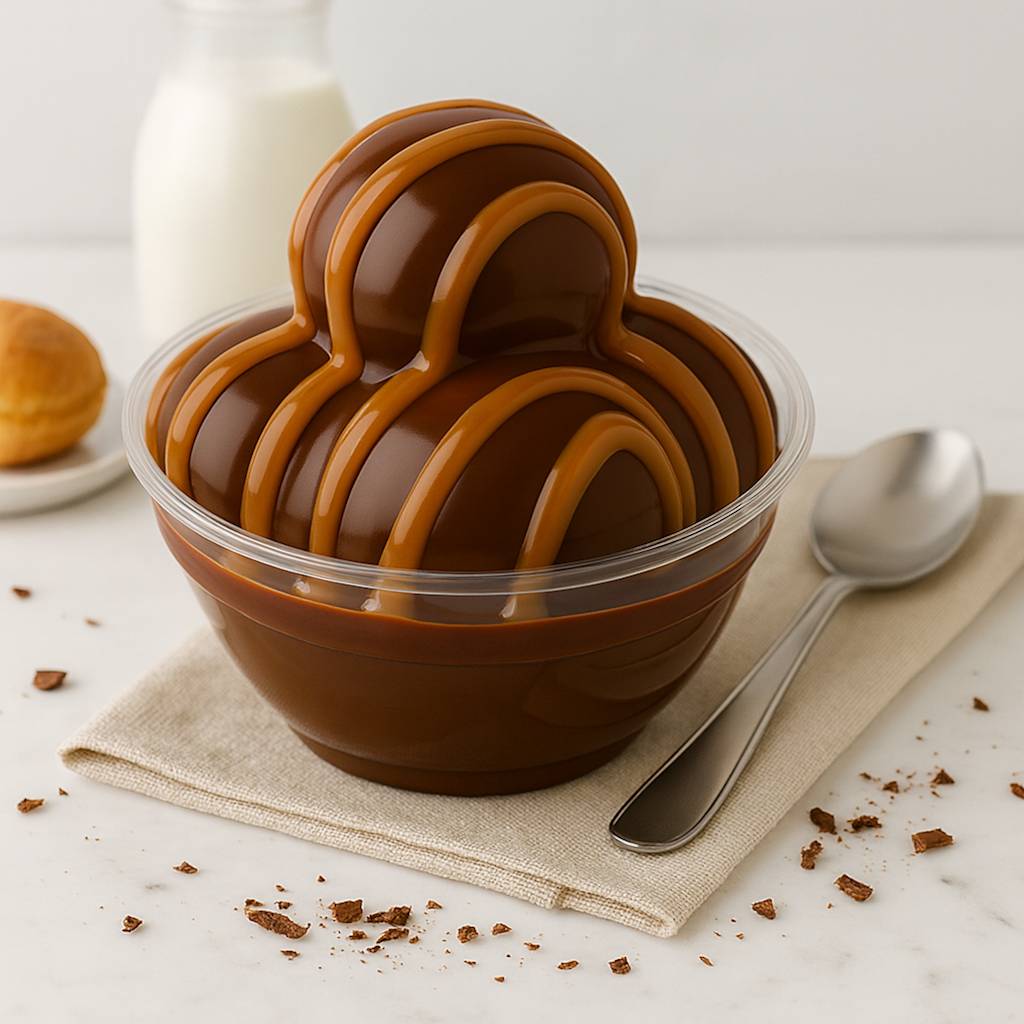 1/2 Karamel Çikolatası Ve Özel Çikolata Sos İlavesi (Katkı Maddesi İçermez.) Sütten Oluşan Sos Profiterol Topları.