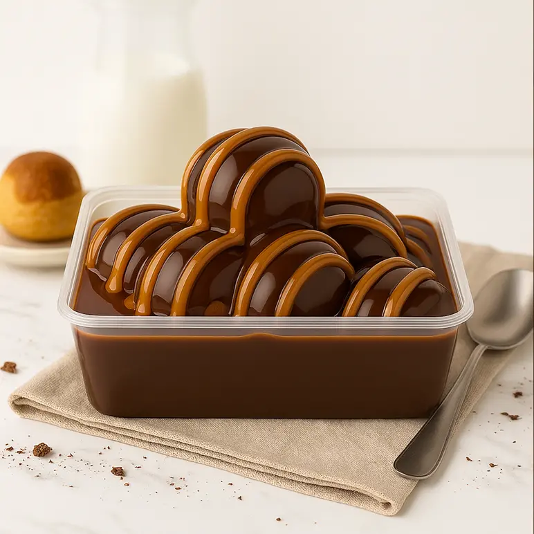1/2 Karamel Çikolatası Ve Özel Çikolata Sos İlavesi (Katkı Maddesi İçermez.) Sütten Oluşan Sos Profiterol Topları.