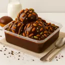 1/2 Karamel Çikolatası, Sütten Oluşan Sos Profiterol Topları, Üzeri Tane Antep Fıstığı